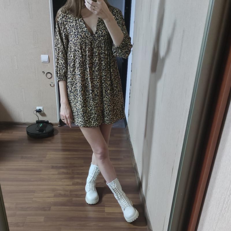 Актуальный принт, есть подклад и карманы Очень круто под грубые ботинки и под ботфорты По бирке XS но большемерит, можно и на S и на М Грудь до 92 Бедра любые, крой свободный Длина по спинке 78 Одето на 92/68/96 рост 172