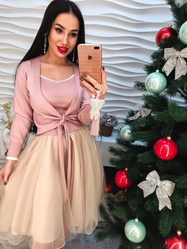 САРАФАН -ТРИКОТАЖНАЯ ОБЛЕГАЮЩАЯ МАЙКА И ЮБКА -КОЛОКОЛЬЧИК ИЗ ОРГАНЗЫ С ПОДЬЮБНИКОМ КОФТА -ЖАКЕТ ИЗ ТРИКОТАЖА, ЭФФЕКТНО ЗАВЯЗЫВАЮЩИЙСЯ НА УЗЕЛ РАЗМЕР ЕДИНЫЙ 42-44 КОД 319