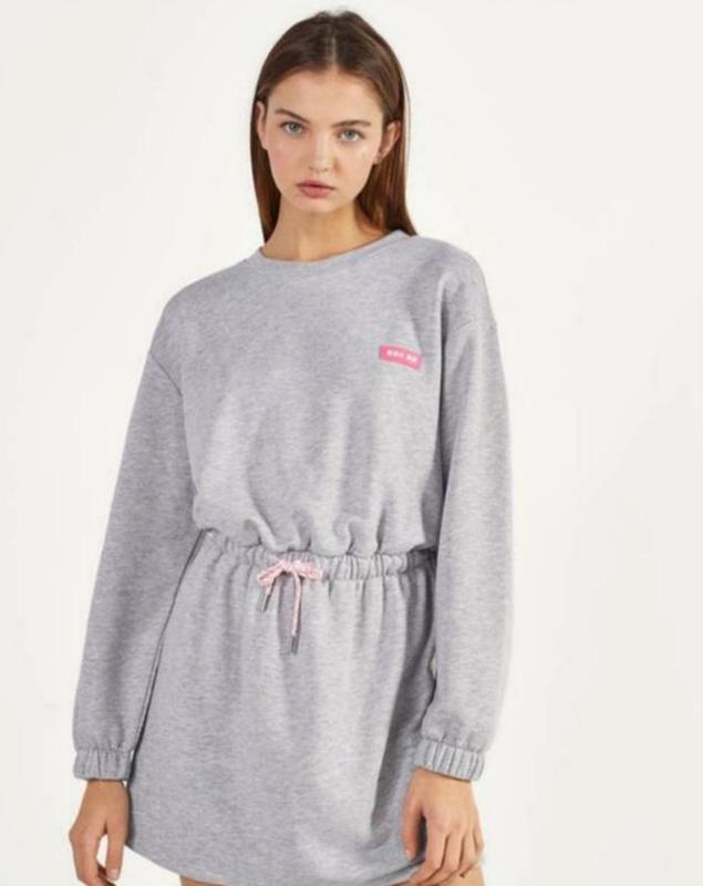 Коротке плаття з круглим вирізом, довгим рукавом і еластичною талією.сукня у стилі оверсайз .довжина 86 см .класно виглядає з кросівками і кедами .