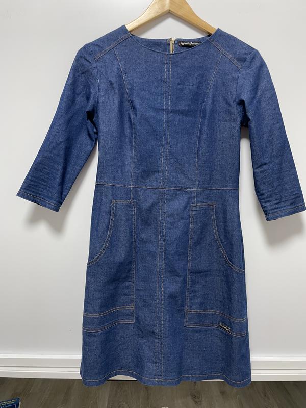 Платье с молнией на спине и карманами спереди.