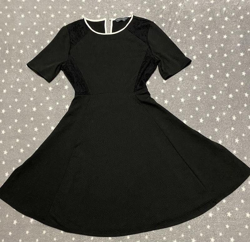 Чёрное платье декор белый и чёрное кружево. Длинна 100. ПОГ 43. ПОТ 40. Ткань тянется . Низ свободного кроя.