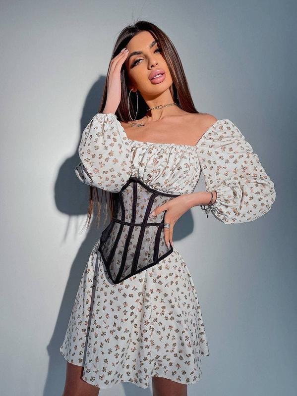 Квіткове плаття зі складанням на грудях прозорий білизняний корсет Розмір: S,M ▫️ціна сукні 680 грн ▫️ціна комплекту 970 грн ▫️тканина: софт Кольори: білий, чорний Ціна 970 грн Артикул: 16181