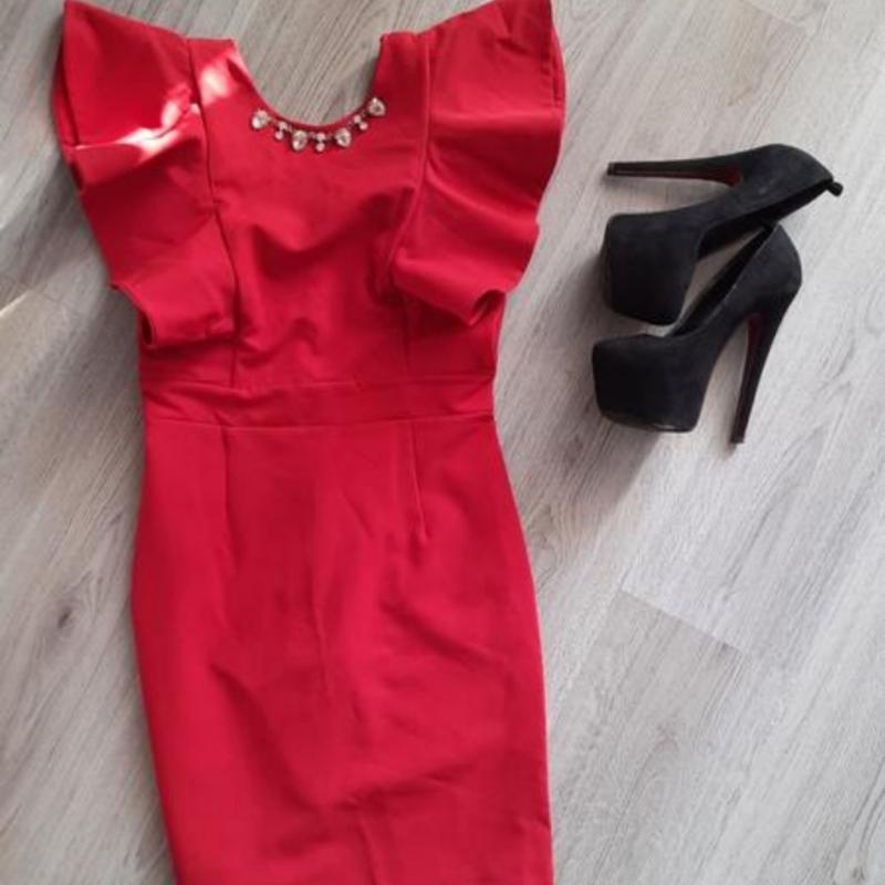 Стильное ярко-красное платье в хорошем состоянии. Было одето 2 раза. Не тянется.