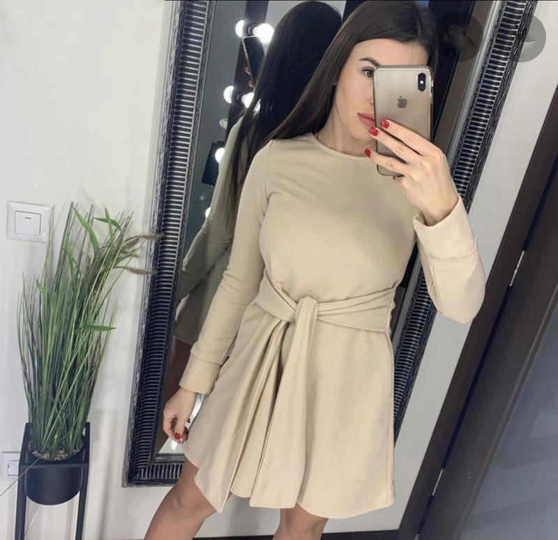 Нюдовое тёплое платье с поясом, трёхнитка, пояс можно завязывать по желанию как спереди так и сзади, приятное к телу, смотрится нереально круто 🤩 Состояние идеальное! ДЛИНА 86 ПОГ 45 ПОТ 43 ПОБ 56 РУКАВА 61 ПЛЕЧИ 39