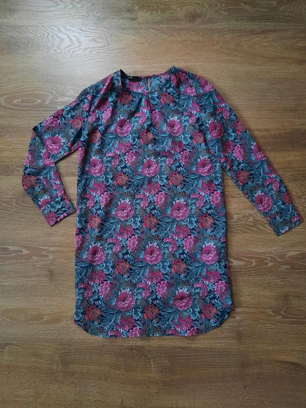 Красивое платье со стильным принтом, прямого кроя. ткань тонкая, есть шифоновый подклад, не тянется и не просвечивает Пог 54 Поб 54 Длина 95 Длина рукава 62 Плечи 43