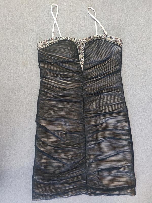Платье в отличном состоянии. Без дефектов и ньюансов. Бренд Jaune Rogue. Состав: полиестер, хлопок, эластан. Бирка с размером отсутствует. Есть чашечки и съёмные регулирующие бретели. Застёгивается на потайную молнию с боку. Качество отменное. Отлично сидит по фигуре. Слегка тянется. Замеры в спокойном состоянии: ПОГ - 39 см. ПОТ - 37 см. ПОБ - 43 см. Длина платья от подмышки 70 см.