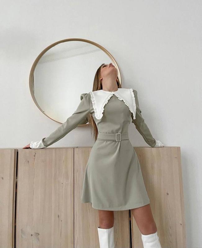 🪐✨Новинка✨ Платье🤩 Модель 042 Размер: 42-44, 46-48 Цвет: чёрный, оливка Ткань: костюмка, манжеты и воротник ккото 🌿Платье с акцентным воротником и белыми манжетами на рукавах - просто незаменимый must have этого сезона. Наряд на каждый день и под любой повод. Платье с плечиками. Пояс в комплекте🌿