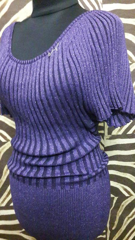 Девочки спешите! Праздники близко! Представляю вашему вниманию шикарное универсальное платье-туника производство Италия (Extyn). Размер S. Можно носить, как платье, как тунику и даже, как блузон! Красивенного фиолетового цвета, сзади завязка для регулировки спинки и соответственно декольте, спереди фирменный металлический логотип (очень тоненький, смотрится, как украшение), снизу широкая резинка для регулировки длины ( на манекен полностью не стала натягивать потому, что оно сразу сужается, в естественном состоянии- это чулок с рукавами:)))). Есть затяжечка, но внутри и не видо вообще, зацепила кольцом. Бирочку с составом срезала, т.к. платье облегает и она просматривалась, но помню, что вискоза в составе точно. Одевалось пару раз на мероприятия. Пишите, с удовольствием отвечу на все вопросы! Размер манекена 44 (наш)