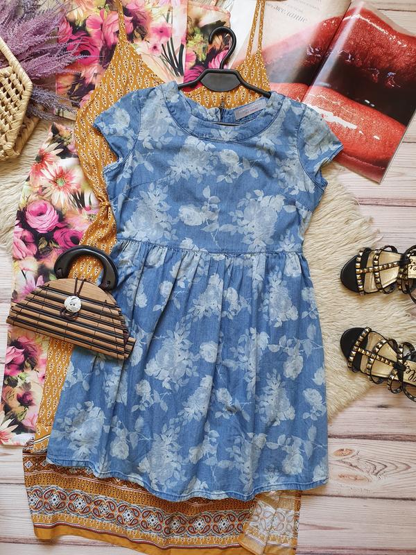 Красивое джинсовое цветочное платье