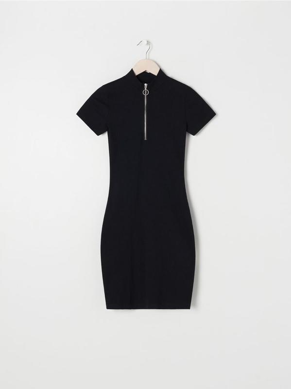 Сукня в рубчик, комір-стійка, на блискавці, колір чорний, розмір s, m склад: 95% БАВОВНА, 5% ЕЛАСТАН Плечі 35 см Пів об'єм грудей 37 см Стегна 39 см Довжина сукні 82 см Зріст моделі 168