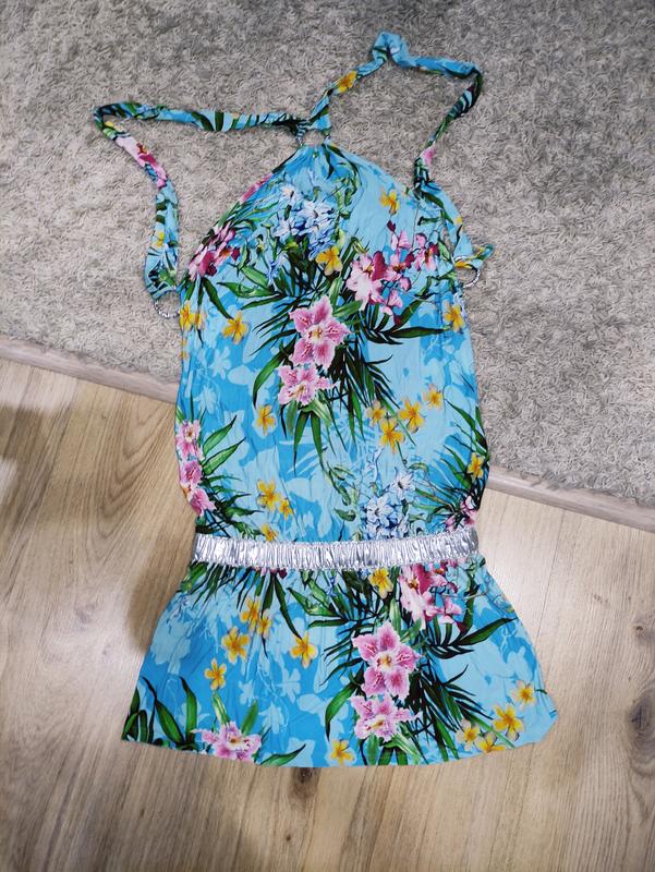 Платье мини с открытой спиной или можно как тунику размер с или хм длина от колечка по средине 76, ширина пояс 31