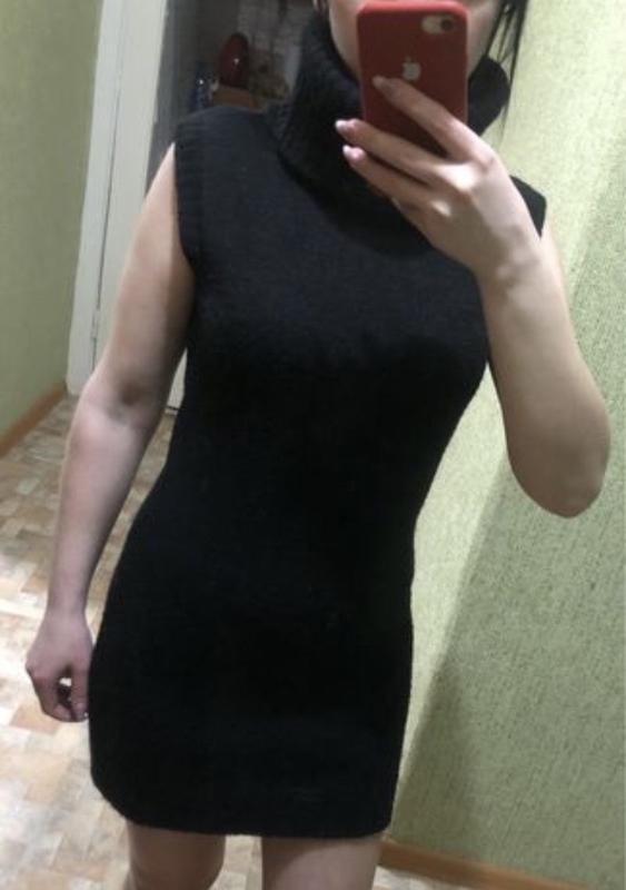 Чёрное тёплое платье/туника, тянется, можно и так, или под низ кофту/гольф-колготки/лосины-каблук/без.Длина от плечей~77-80, длина воротника~25, ширина воротника~20-23, ширина на груди~35-37, на бёдрах~38-40, внизу~46, длина разреза рукава~20но опять же оно хорошо тянется, это замеры делались в положении платья как на последнем фото. S-M