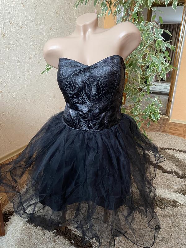 Платья с фатином на легком корсете. Чёрное . Размер 42-44. Красиво держит грудь. Фатиме выпрямится при сушке либо утюгом