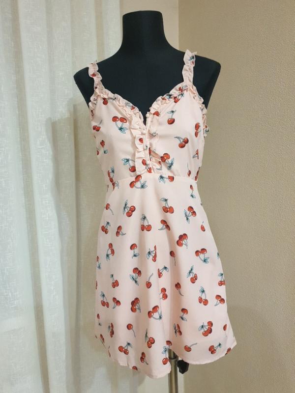 Короткое платье в вишенки. Missguided размер UK 8. Длина 85 см Талия 33 см