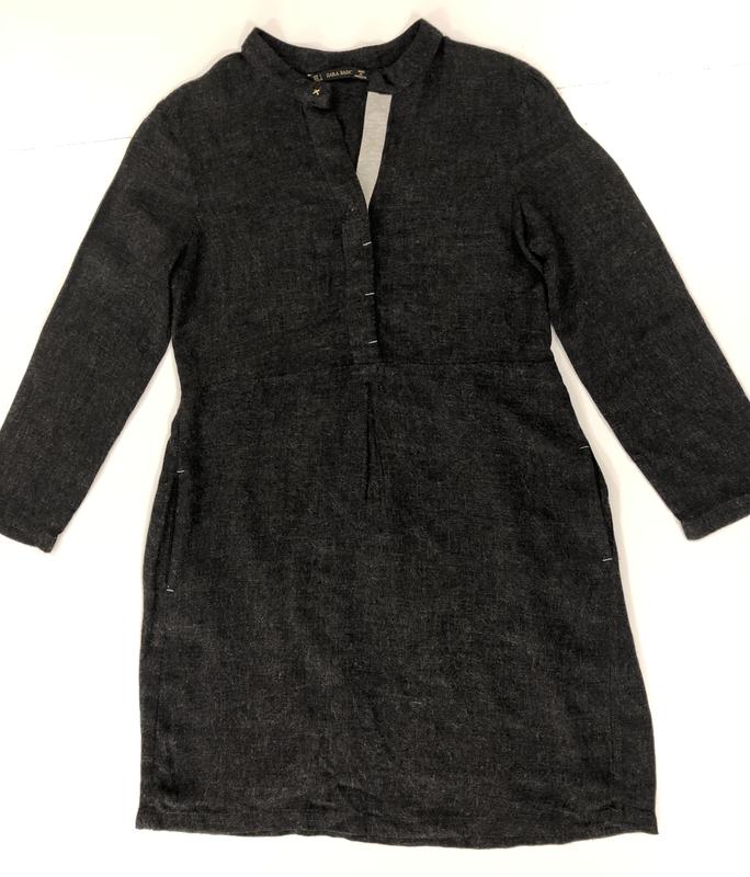 Стильное, очень качественное платье. Можно носить как тунику с джинсами. Размер 36. Поб 48, плечо 11,5, длина рукава 54, длина до талии спереди(завышена) 38, длина изделия 91см. Без нюансов и следов носки