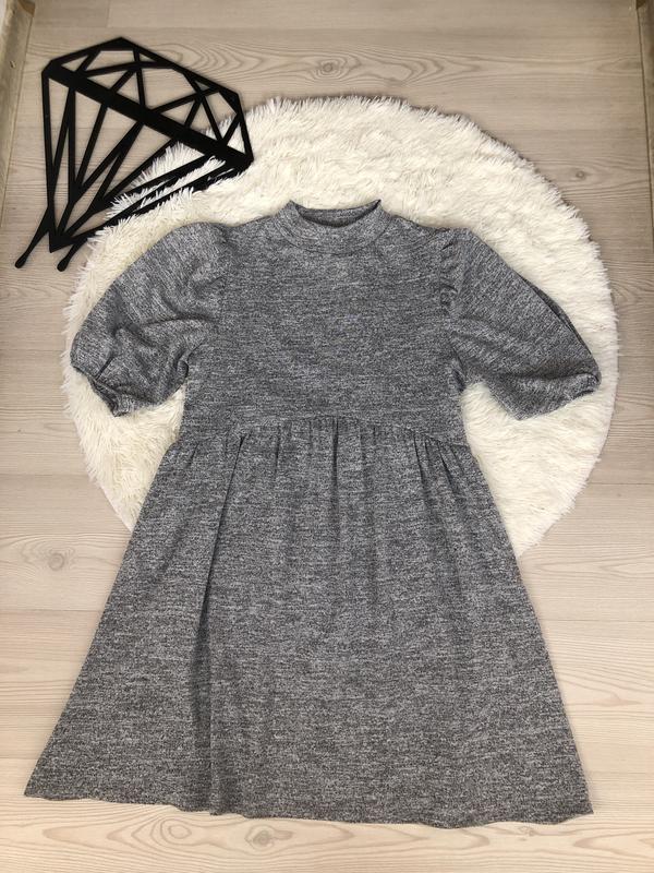 Стильное платье свободного кроя Трендовый фасон, объёмные рукава буфы Приятная ткань к телу Новое с бирками Замеры Длина-88 П.о.г-47 Рукава-32 П.о.б-64 П.о.т-44