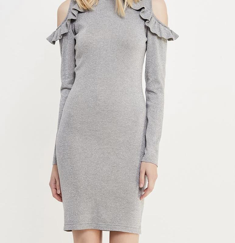 Плаття срібного кольору з люрексовою ниткою в складі. Довжина - 92 см, Довжина рукава-50 см. Стан ідеальний