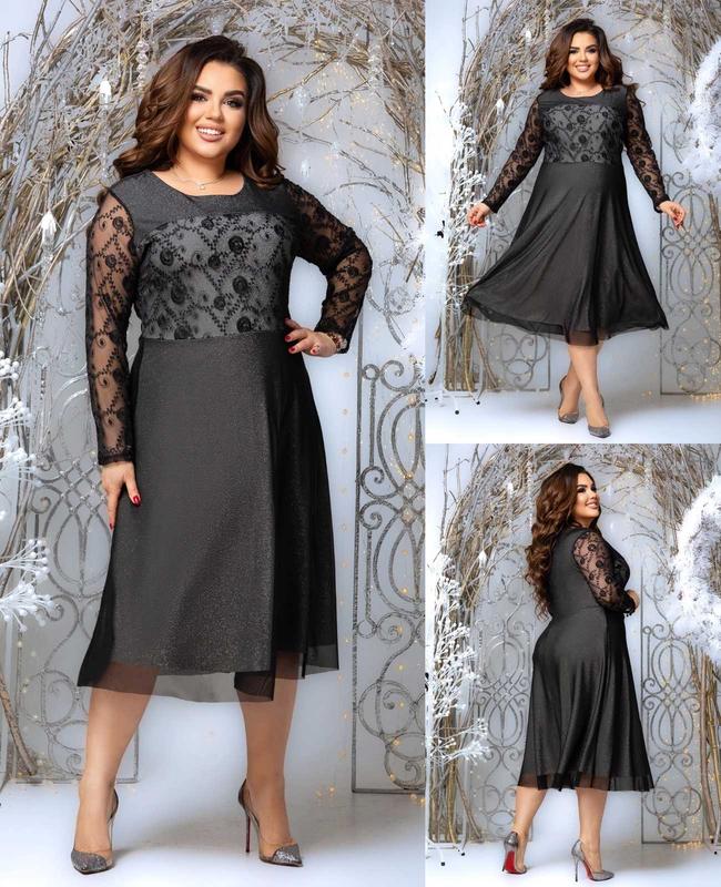НОВАЯ ЦЕНА 430 ГРН ПУДРА ВСЕ РАЗМЕРЫ Платье Модель : eli3330 - Материал: основа трикотаж люрекс, верх накрыт шифоном и гипюром - Цвета: серый, пудра Замеры по изделию: - Длина по спинке: 120 см - Рукав: длинный - Размеры: 1(48-50); 2(52-54); 3(56-58) 1 р/р - ОГ 102 ОТ 86 ОБ 122 2 р/р - ОГ 110 ОТ 94 ОБ 130 3 р/р - ОГ 118 ОТ 102 ОБ 138 Растяжимость ткани 2-4 см