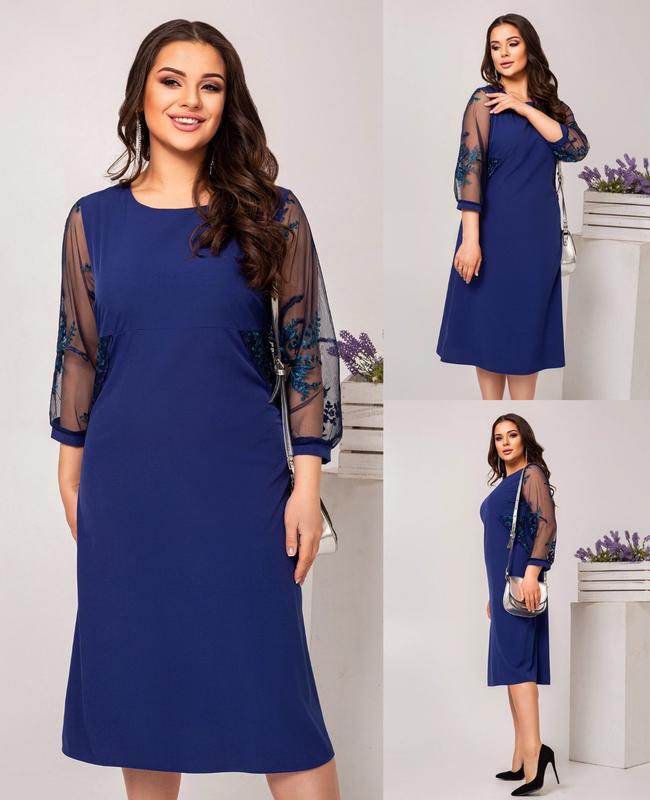 Платье Модель : eli3339 - Материал: турецкий софт основа, рукав вышивка - Цвета: изумруд, синий, дымка - Цена: 640грн Замеры по изделию: - Длина по спинке: 110 см - Рукав: 3/4 - Размеры: 1(52-54); 2(56-58); 3(60-62) 1 р/р - ОГ 116 ОТ 108 ОБ 122 2 р/р - ОГ 124 ОТ 116 ОБ 130 3 р/р - ОГ 132 ОТ 124 ОБ 138 Растяжимость ткани 2-4 см