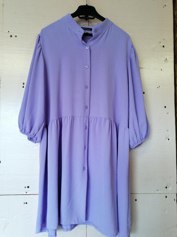 Платье рубашка жатка фасон разлетайка нежно лилового цвета
