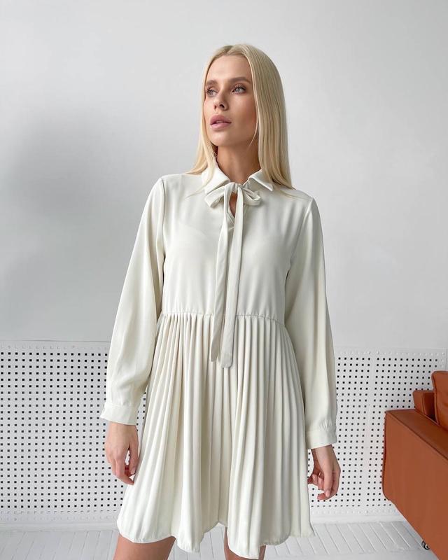MUST HAVE💔💔💔 Платья-рубашки из креп-шифона с юбкой плиссе🤩 качество🔥 🌈 2 расцветки🖤 коричневые и беж 〰️ Арт. 416 🔻Размер уни 42-46 🔻775 грн.😍