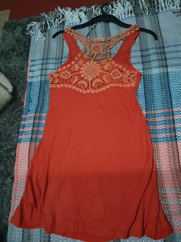 Літнє платтячко, оранжевого кольору. Розмір М. Довжина 82см., Пог 40см., Низ вільний.