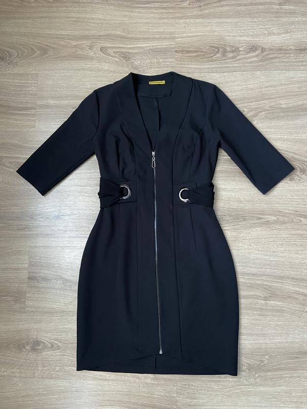 Ошатне плаття Perle Donna у розмірі 40, відмінно сяде на 38 і 36. Ззаду сукню трохи довше ніж спереду. Тканина поліестер, дякую якої сукня відмінно тримає форму. На дотик дуже приємне і комфортне. Колір - темно-синій. Заміри прикріплюю: Довжина спереду: 88 см Довжина ззаду: 94 см Пог:45 см Пот: 38 см Побіди: 50 см Довжина рукава: 37,5 см