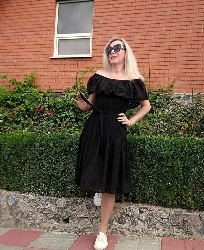 Оригинальное, летнее платье с отрезной линией талии под пояс. Ткань - хлопок, ришелье.