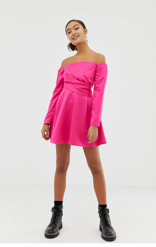 COLLUSION off the shoulder twist front skater dress Заказывала на сайте ASOS - к сожалению, не вижу себя в нём:( Очень красивое платье и ни разу не надела. EU 42 На М - идеально, можно даже на небольшую L