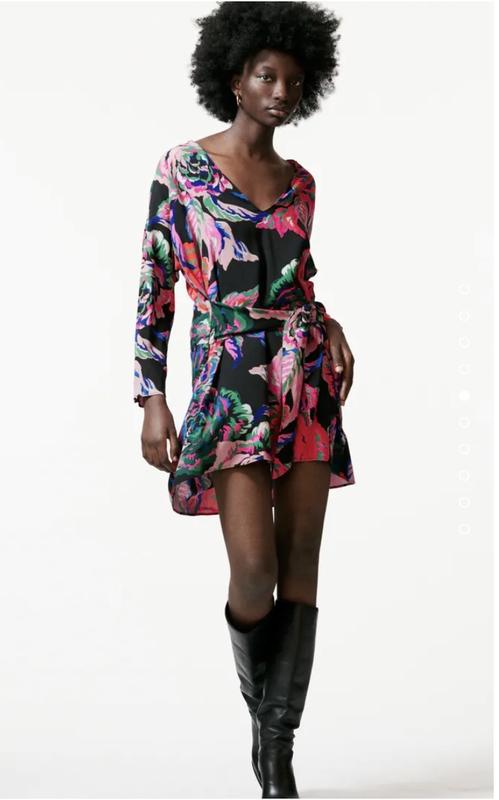В наличии платье Zara.Размер XS,подойдет и на S.Свободный крой.Длина 87см,длина рукава от ворота 65см,пог 55см.100%вискоза.