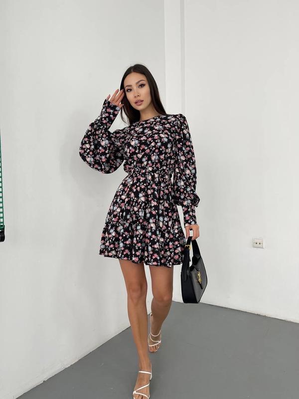 Платье в цветочки с мажетом и воланом 😻и объёмные рукава Очень красиво под косуху, под любую обувь🤤 Код 388 Размер : с(42-44) ; м (44-46) Ткань : софт , Цена :625 грн. В Наличии