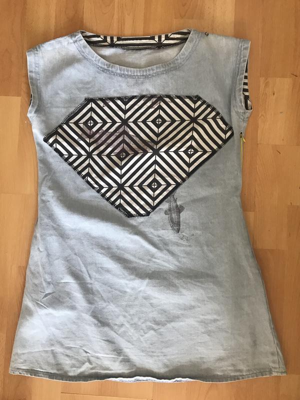 Продам оригинальное джинсовое платье. Можно носить как короткое платье или как тунику под лосины. Состояние отличное. Длина по спинке 76см Пог 49,5 Есть кармашки и молния сбоку Отправка возможна только Новой почтой