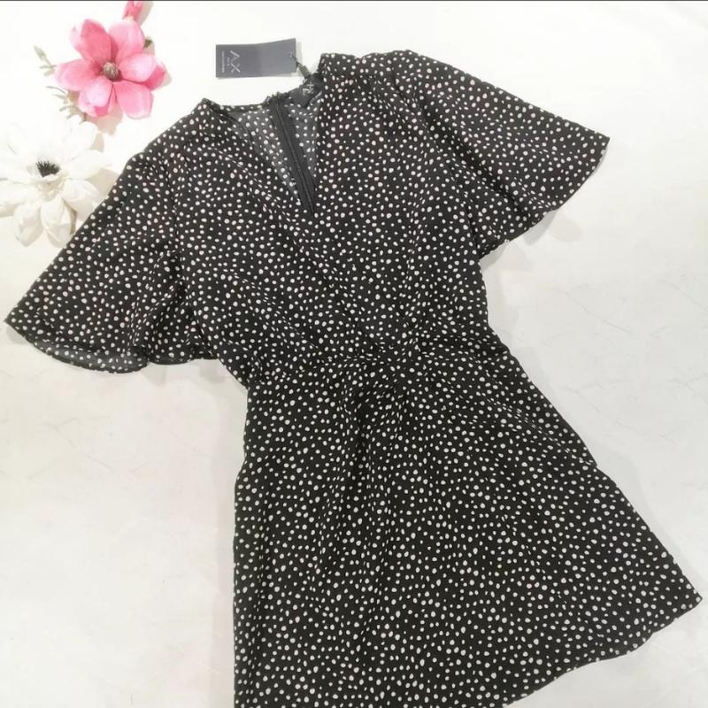 платье в горох. талия на резинке, пл изделия 64 см, тянется до 90 см