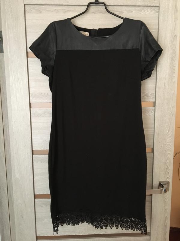 Плаття з вставками шкіри на рукавчиках, внизу мереживо Довжина-96 см, грудей пів охоплення -43, талія-46, стегна-48