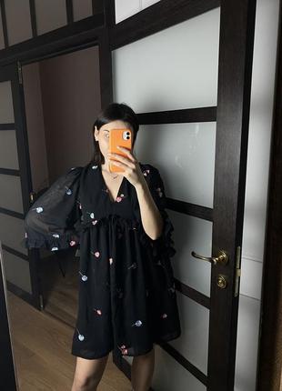 Дуже стильна та легка сукня, з вишитими квітами, з красивою спинкою Є невеликий недолік, в зоні декольте на фото видно