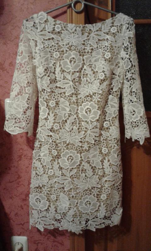 классное ажурное платье молочного цвета.Длинна 81,пот 35,поб 40.рукав 3/4.подкладка телесного цвета очень дорого и нарядно смотрится.р.s