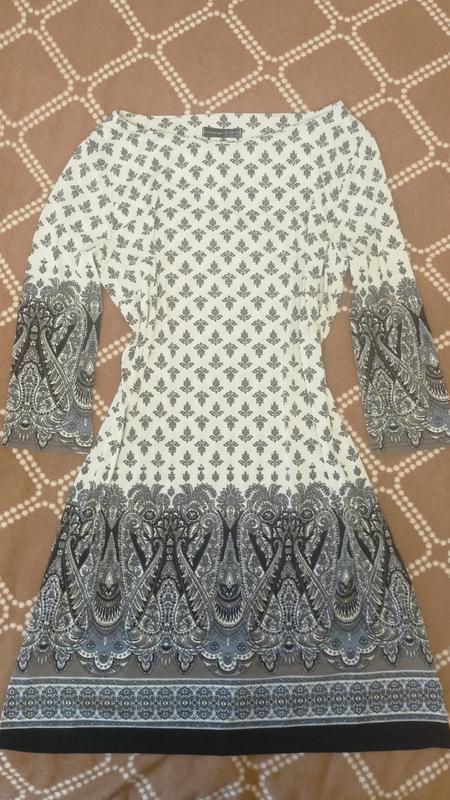 Зручна туніка молочно-білого кольору з рукавом 3/4. Психоделічний принт з абстракціями та турецькими огірками. Легка шовковиста тканина, яка не мнеться. Бірки зі складом немає. Заміри за запитом. 18 розмір 🎁 Купуй у мене два товари і вибирай собі подаруночок серед запропонованих позицій