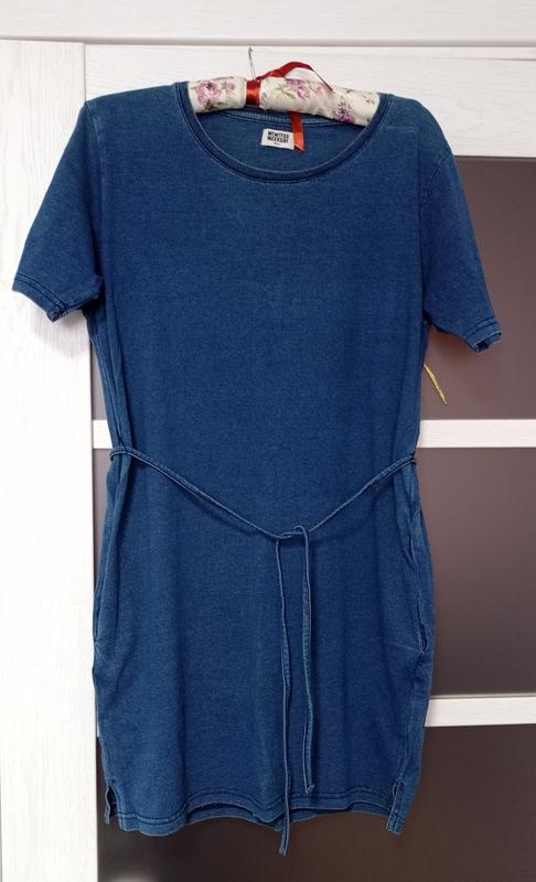Красивое хлопковое свободное платье, похоже по цвету на джинсовую ткань. Есть два кармана по бокам и тоненький поясок, без пояска тоже классно смотрится. Внизу платья два маленьких разреза. Размер указан S, а так ориентируйтесь по замерам🤗 Есть нюанс, немного светлее на плечах и сзади полосочка, но это фактически не видно, фото не показывает. Плечи 43 см. Длина рукава 23 см. ПОГ 53 см. ПОТ 51 см. ПОБ 52 см. Длина платья по спинке 87 см.