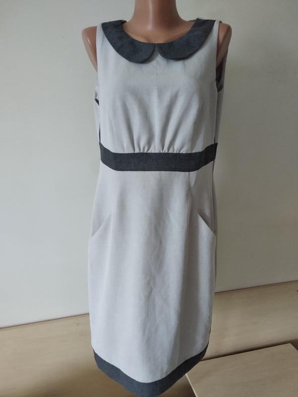 зручна легка літня сукня з кишенями і комірцем сірого кольору 48р.( без бірки)