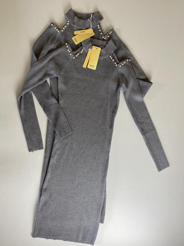8️⃣1️⃣ Жіночна облягаюча сукня з відкритими плечима (перлини можна зняти за бажанням) Фабрична якість - не кашлатится, перевірено на собі) Дуже приємна до тіла дрібна в'язка в рубчик, відмінно тягнеться Нове з біркою В наявності 2 розміри: XS-S та S-M ● Довжина 95 см Склад: 50% віскоза, 50% нейлон