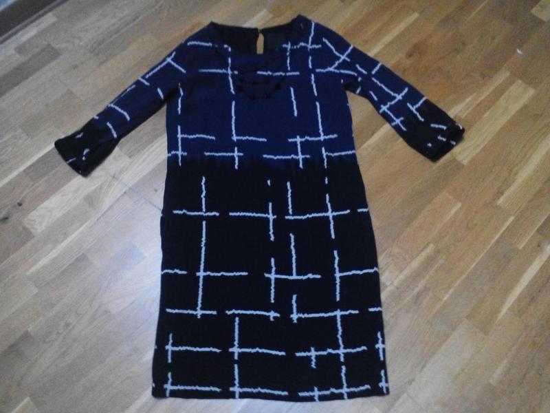 Плаття фірми InWear стильне і ошатне, добрий стан, без пошкоджень , розмір 36 (може підійти і на 38) . Верхня тканина 100% віскоза, низ чохол поліестр. Рукав 3\4, з боків потаємні кишеньки, сукня повністю на год Довжина 94 від плеча, рукав-46 см (3/4), пог 46, побіди 50