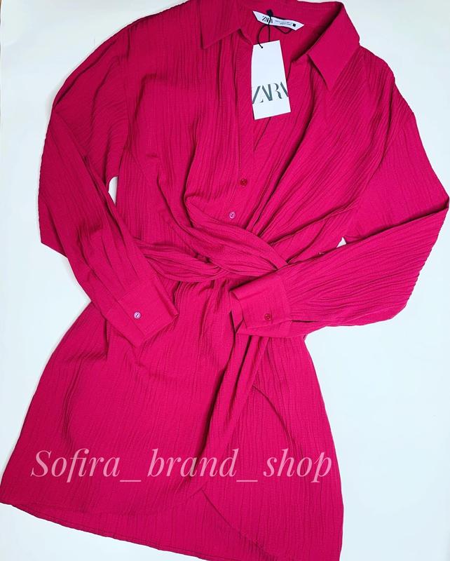Сукня із сорочковим коміром, V-подібним вирізом і довгими рукавами від Zara. Застібається на ґудзики спереду та приховану блискавку збоку. Ремінь із тієї ж тканини на поясі та розріз спереду внизу додає сукні особливого шарму🥰 ✅В наявності в розмірі S, M