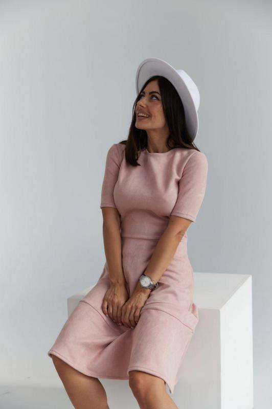 нежно-розовое зефирное платье новое, без бумажной бирки очень легкое,ткань микро замш размер М сзади на змейку застегивается