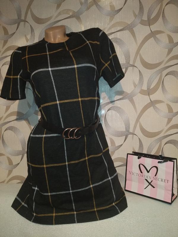 Женское платье в клетку с поясом в комплекте,рассчитано на 46р.Цвет основной черный.Ткань тянется.Без нюансов.Замеры предоставлю по требованию