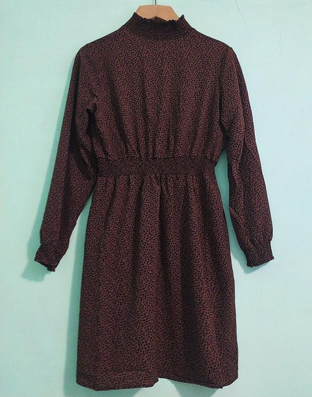 Лёгкое, стильное платье от casual ladies, в идеальном состоянии. Актуальный принт. На воротнике, талии и рукавах мягкая резинка. Сзади ворот застёгивается на пуговицы. Цвет: насыщенный коричневый. Размер Л, замеры предоставлю.