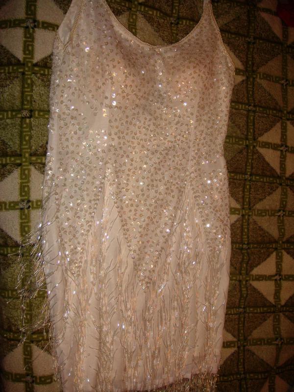 Платье в пайетках с бисером, размер S-М , сбоку на молнии,стоимость таких платьев в салонах от 2000 грн., продаю недорого т.к. на правом боку пайетки немного растерялись.В вечернем освещении смотрится блестяще. Замеры платья : пог 44 поб 49 пот 42 длина 86+9 см выступает бисер На груди чашечки , если не нужно их можно легко убрать. больше фото в переписке