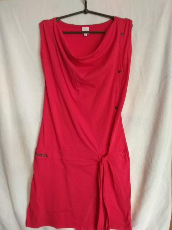 Шикарне брендове літнє плаття Bench. Колір яскраво - рожевий. Оригінальний дизайн, без рукавів. Занижена лінія талії, зав'язується на поясок. Асиметричну низ спереду. Воріт - драпірування, дуже гарно лягає. Усі логотипи витримані. ПОГ-ПОТ-ПОБІДИ 44-42-46. Якісний трикотаж. Тканина тягнеться. Довжина 90 див. Стан нової речі без паперової бирки. Сліди шкарпетки відсутні. Дефектів немає.