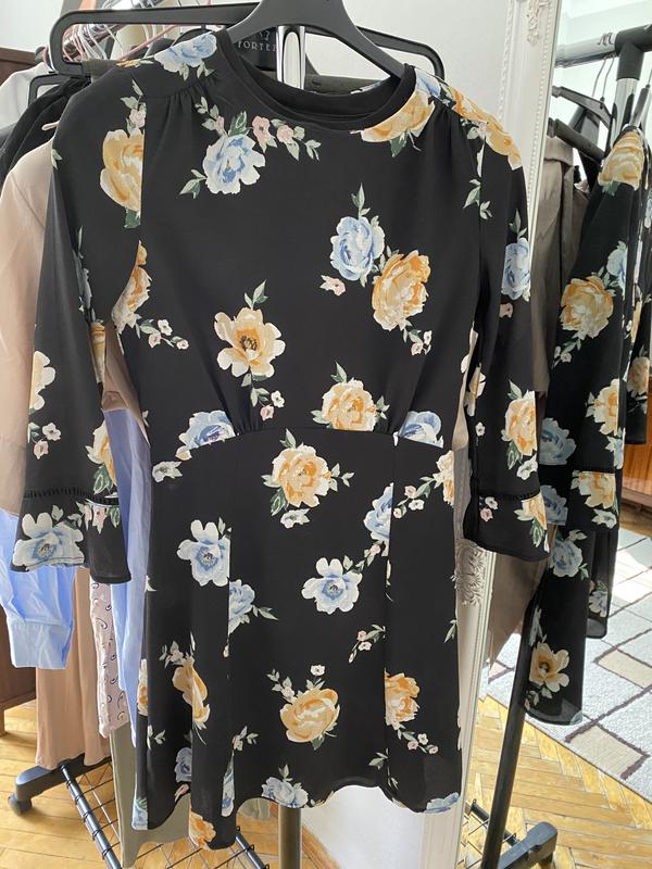 Сукня з легкої тканини в квіти, розмір ХС, класний весняний варіант, з джинсовою курткою буде ідеально разом.