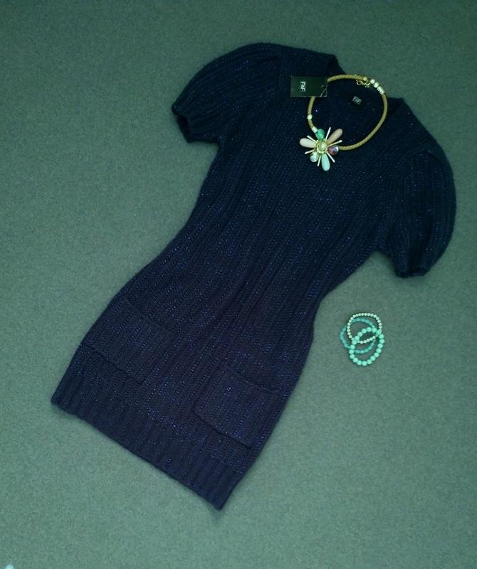 Платье от F&F, р-р M. Красивый темно-синий цвет, крупная вязка с металлической ниткой в составе. Тёплое и комфортное! Длина 86 см, плечи 36 см, грудь 44 см. Новое с биркой, сток!