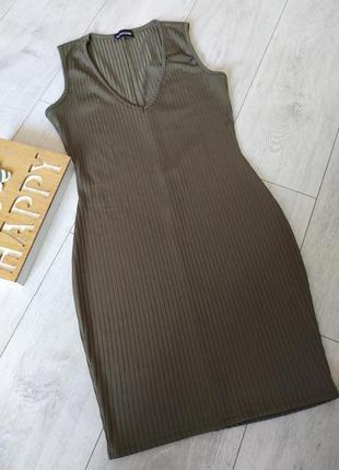 Класичне, приталене плаття в рубчик. Сукня під спортивний стиль, ідеально підійде до кросівок, або до будь-якого іншого взуття. Колір хакі, болотний (фото не передає). Гарно тягнеться, не мнеться. Бренд Prettylittlething. Розмір вказаний 10. Склад: 95%-поліестр, 5%-еластан. (11)